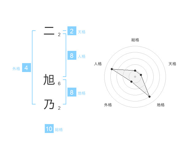 二 旭乃さんの地格は8画の4点!