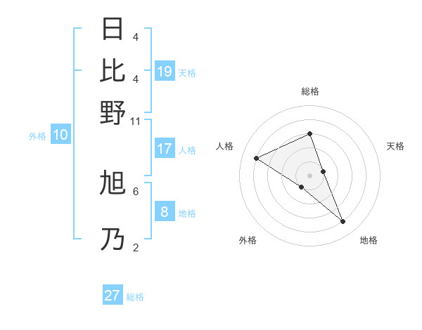 日比野 旭乃さんを姓名の画数から五運を鑑定
