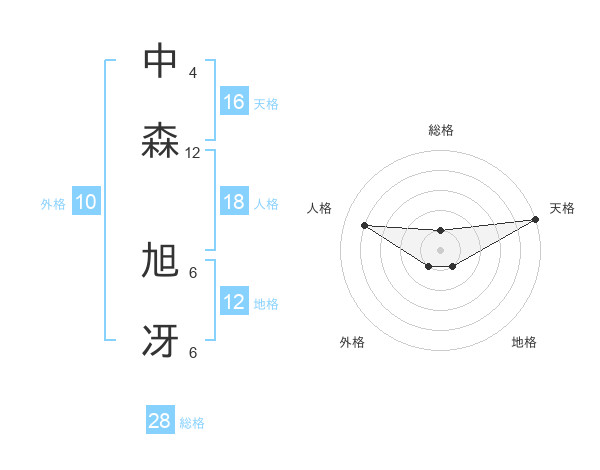 中森 旭冴さんを姓名の画数から五運を鑑定