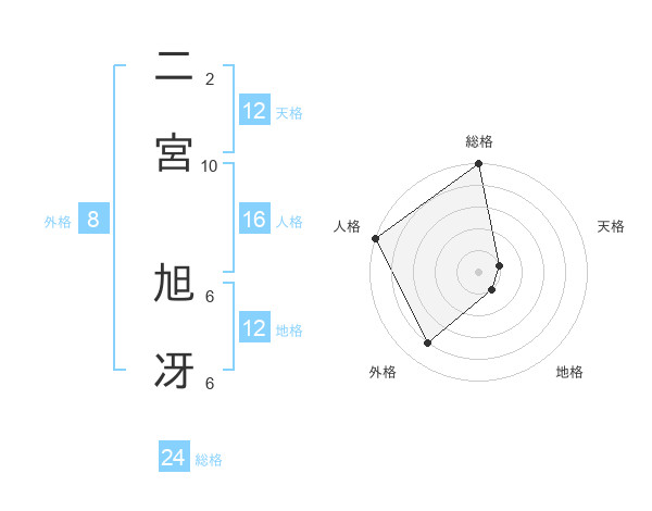 二宮 旭冴さんを姓名の画数から五運を鑑定