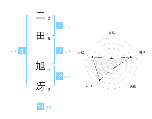 二田 旭冴さんを姓名の画数から五運を鑑定