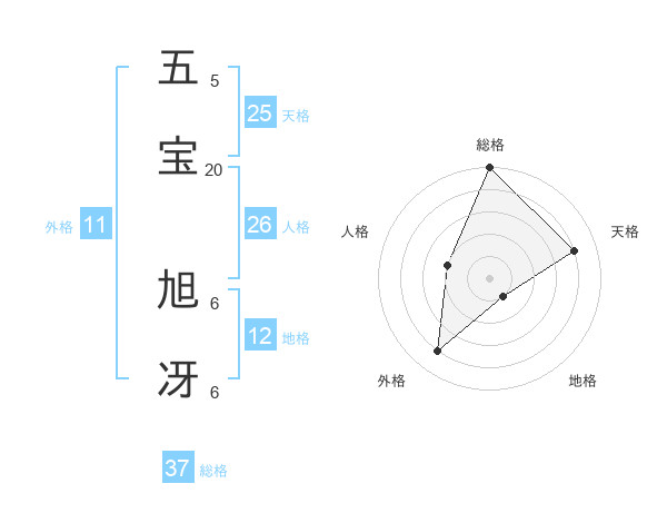 五宝 旭冴さんを姓名の画数から五運を鑑定