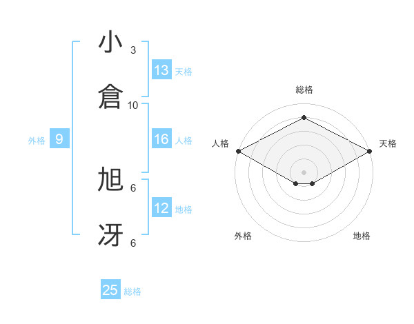 小倉 旭冴さんを姓名の画数から五運を鑑定