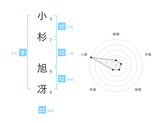 小杉 旭冴さんの総格は22画の1点!
