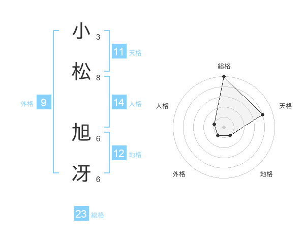 小松 旭冴さんの総格は23画の5点!