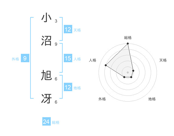 小沼 旭冴さんの総格は24画の5点!