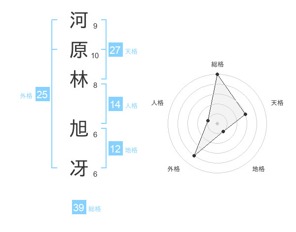 河原林 旭冴さんを姓名の画数から五運を鑑定