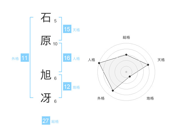 石原 旭冴さんを姓名の画数から五運を鑑定