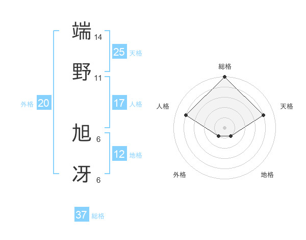 端野 旭冴さんの総格は37画の5点!