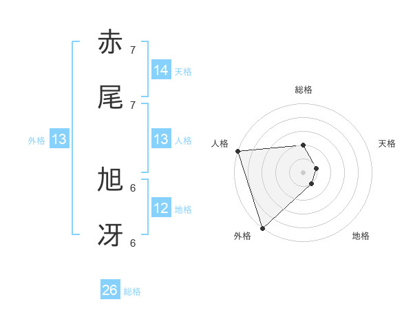 赤尾 旭冴さんを姓名の画数から五運を鑑定