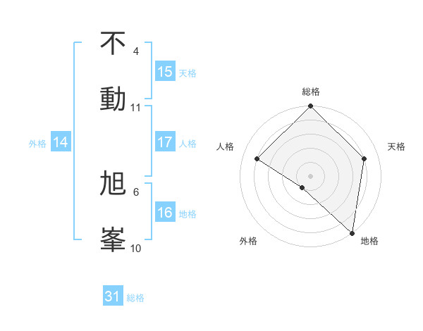 不動 旭峯さんの天格は15画の4点!