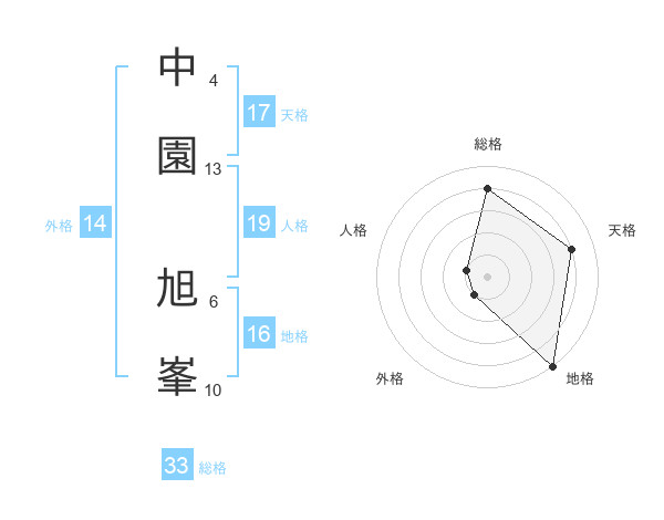 中園 旭峯さんの天格は17画の4点!
