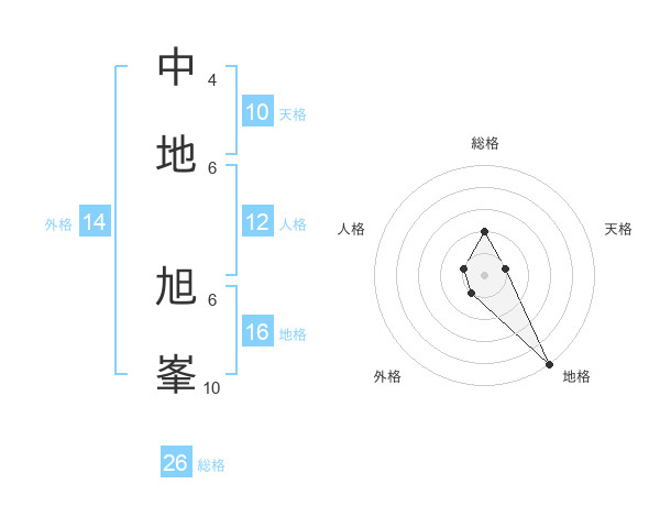 中地 旭峯さんの総格は26画の2点!
