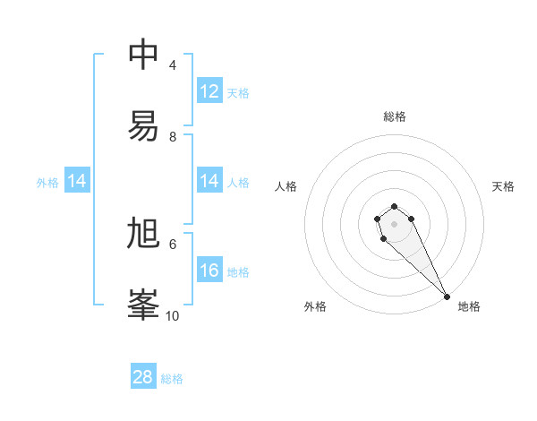 中易 旭峯さんを姓名の画数から五運を鑑定