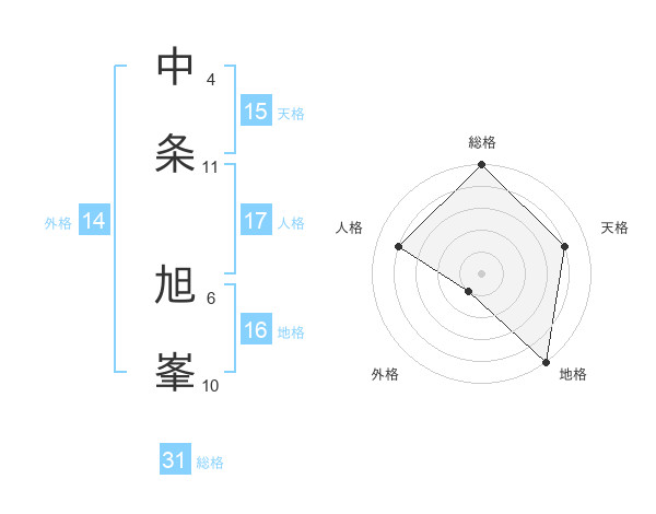中条 旭峯さんの総格は31画の5点!