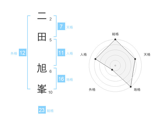 二田 旭峯さんの総格は23画の5点!