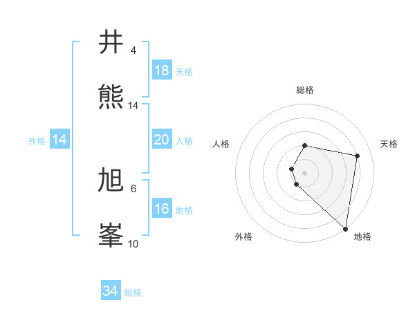 井熊 旭峯さんを姓名の画数から五運を鑑定
