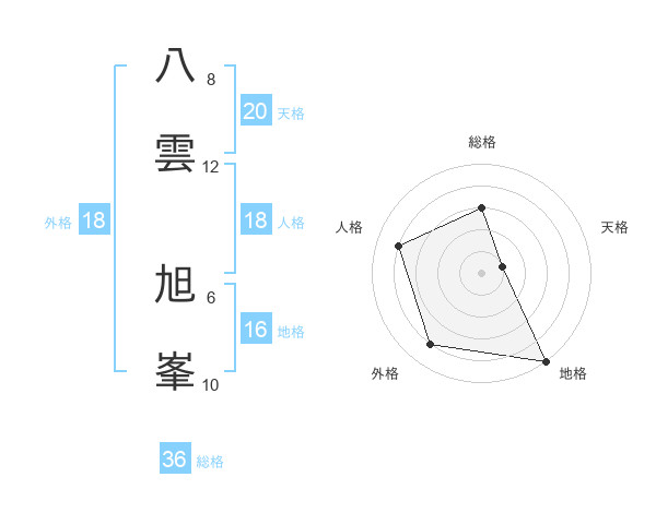 八雲 旭峯さんの天格は20画の1点!