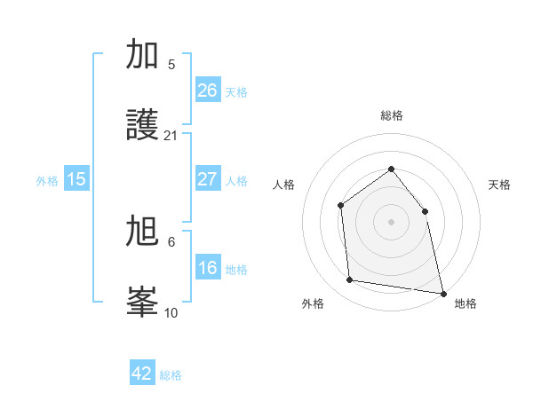 加護 旭峯さんの天格は26画の2点!
