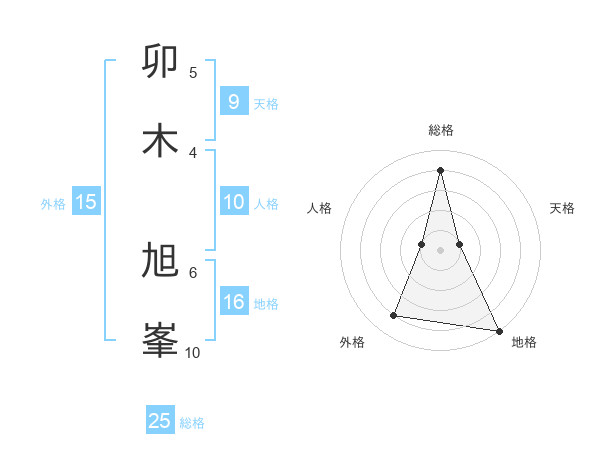 卯木 旭峯さんを姓名の画数から五運を鑑定