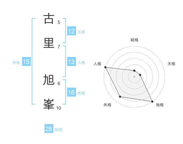 古里 旭峯さんを姓名の画数から五運を鑑定
