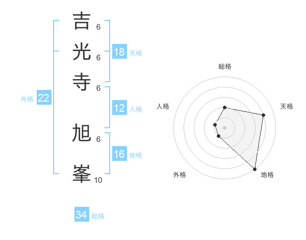 吉光寺 旭峯さんの総格は34画の2点!