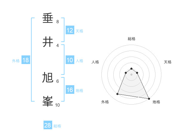 垂井 旭峯さんを姓名の画数から五運を鑑定