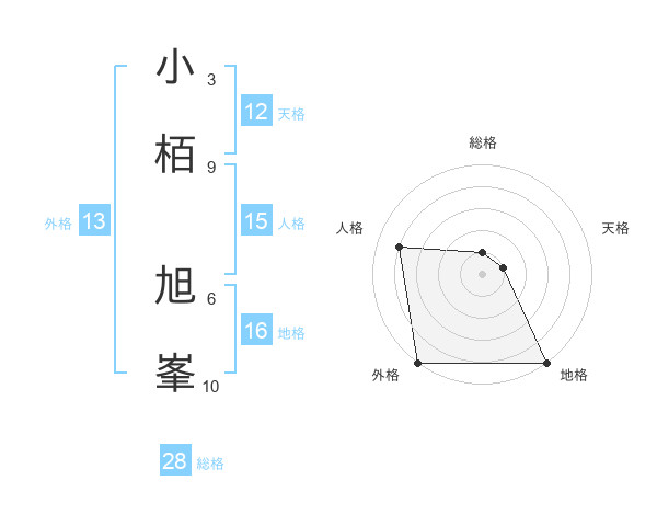 小栢 旭峯さんの総格は28画の1点!