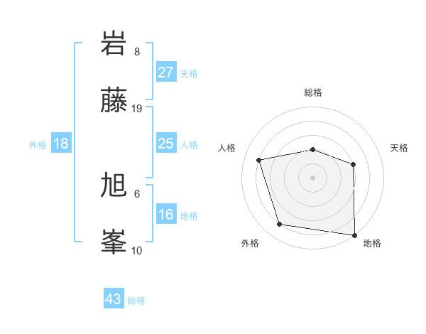 岩藤 旭峯さんの総格は43画の2点!