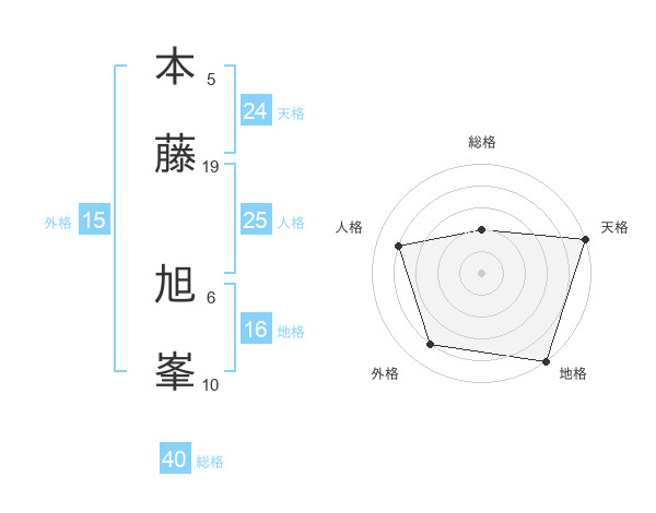 本藤 旭峯さんの天格は24画の5点!