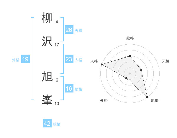 柳沢 旭峯さんの総格は42画の3点!