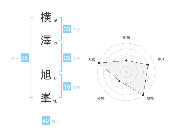 横澤 旭峯さんを姓名の画数から五運を鑑定