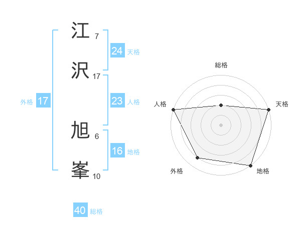江沢 旭峯さんの天格は24画の5点!