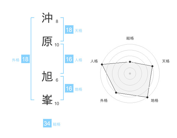 沖原 旭峯さんを姓名の画数から五運を鑑定