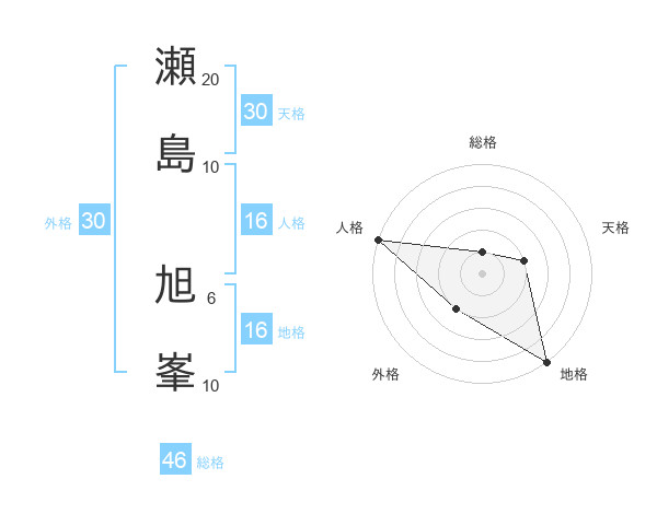瀬島 旭峯さんの総格は46画の1点!