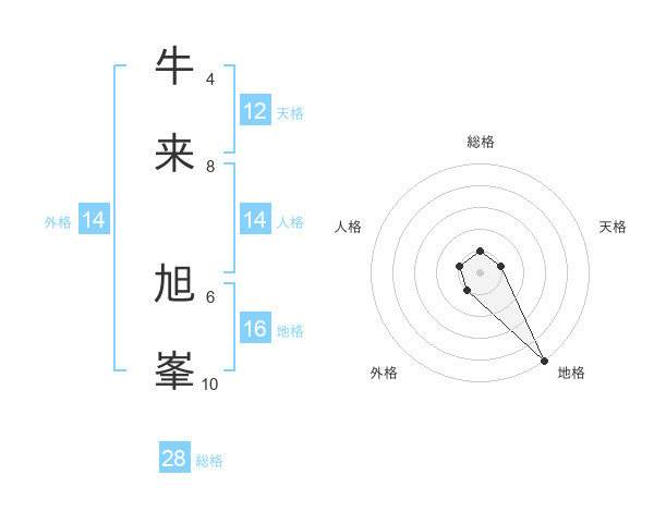 牛来 旭峯さんを姓名の画数から五運を鑑定