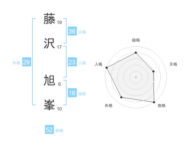 藤沢 旭峯さんの総格は52画の4点!