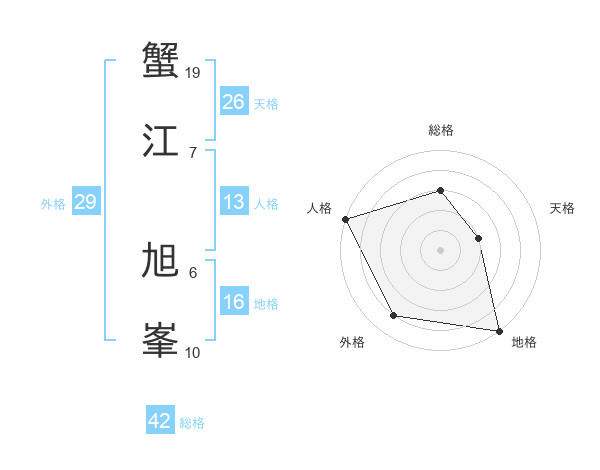 蟹江 旭峯さんを姓名の画数から五運を鑑定