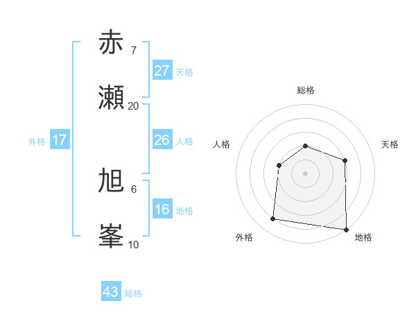 赤瀬 旭峯さんの総格は43画の2点!
