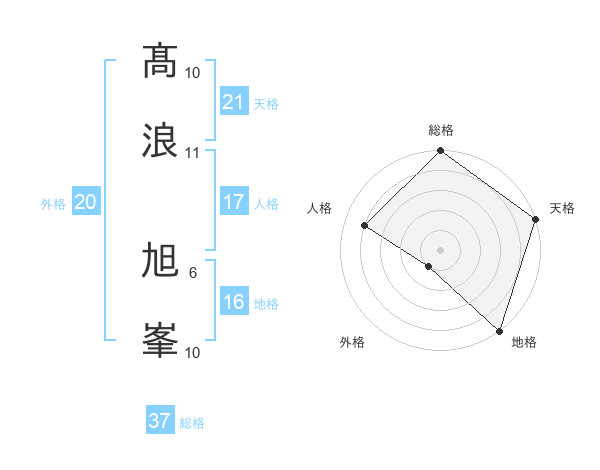 髙浪 旭峯さんの総格は37画の5点!