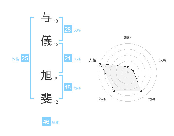 与儀 旭斐さんを姓名の画数から五運を鑑定