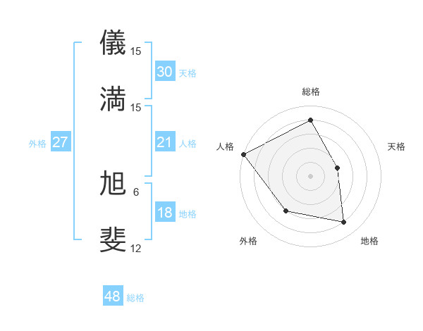 儀満 旭斐さんの天格は30画の2点!