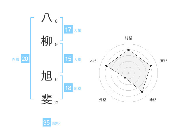 八柳 旭斐さんの外格は20画の1点!