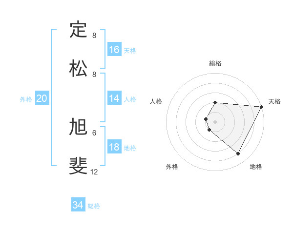 定松 旭斐さんの天格は16画の5点!