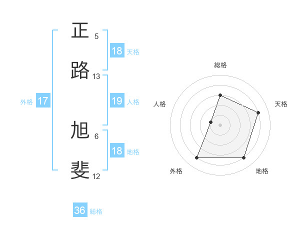 正路 旭斐さんの天格は18画の4点!