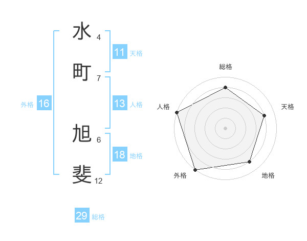 水町 旭斐さんの総格は29画の4点!