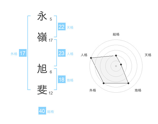 永嶺 旭斐さんを姓名の画数から五運を鑑定