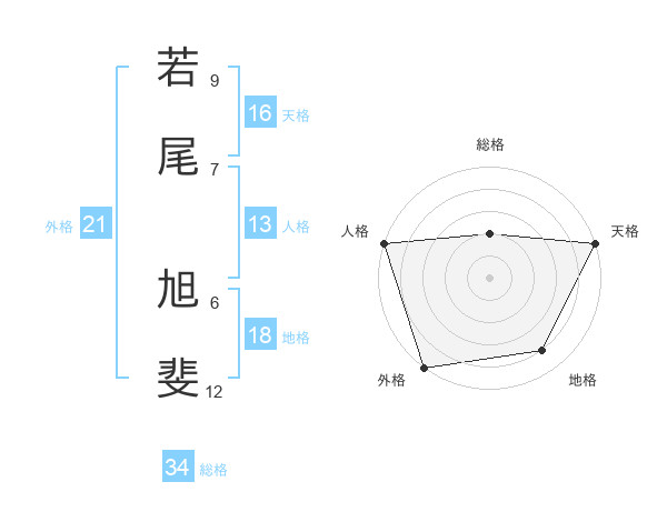 若尾 旭斐さんの総格は34画の2点!
