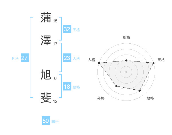 蒲澤 旭斐さんの天格は32画の5点!