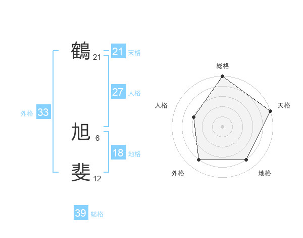 鶴 旭斐さんの総格は39画の5点!